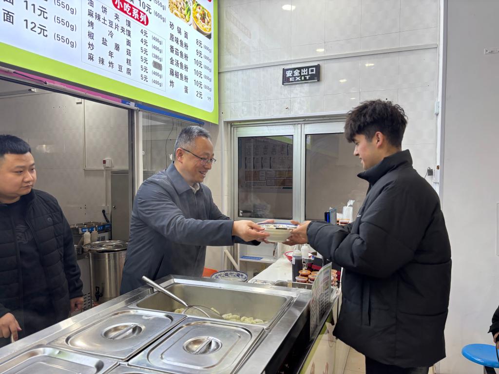 张国栋书记等一行人与大家亲切交谈,询问同学们的用餐感受,叮嘱大家冬至时节要注意保暖,照顾好自己。工作人员忙碌的身影、师生们欢快的笑声,共同构成了冬至校园里一幅温馨和谐的画面,让这个寒冷的冬日充满了浓浓的温情与关爱。(撰稿:渭雨达管理服务有限公司 荆耀辉 审核:王波)