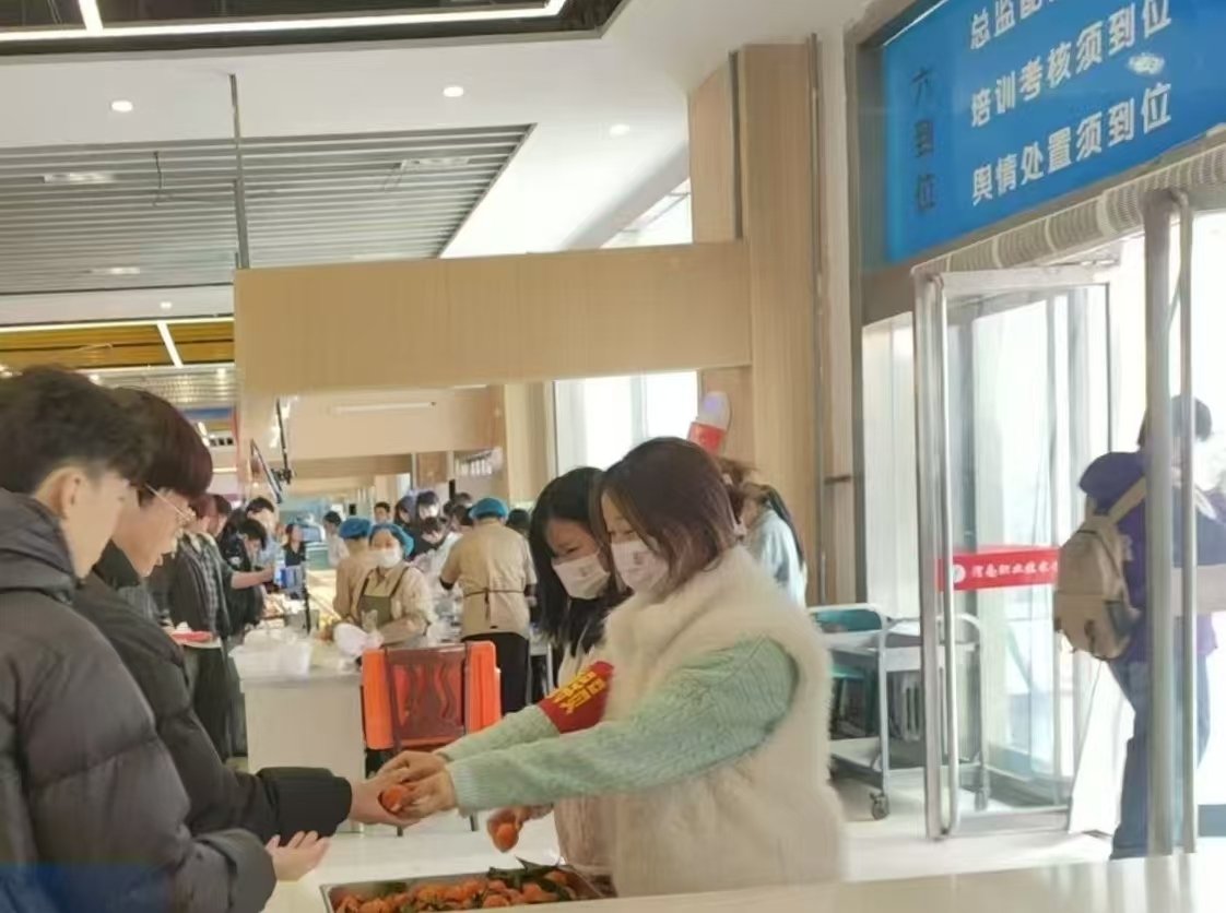 活动严格按照学校学雷锋志愿服务、文明实践活动有关要求,将珍惜粮食、光盘行动、文明服务、志愿服务落到实处。活动当天,全体管理人员佩戴红袖章在岗值守,学生志愿者积极参与现场引导,共同维护就餐秩序、倡导文明规范。推出“光盘有礼”激励举措,对践行光盘行动的师生赠送饮用水、水果、饮品等,以实际行动引导大家节约粮食、文明就餐。