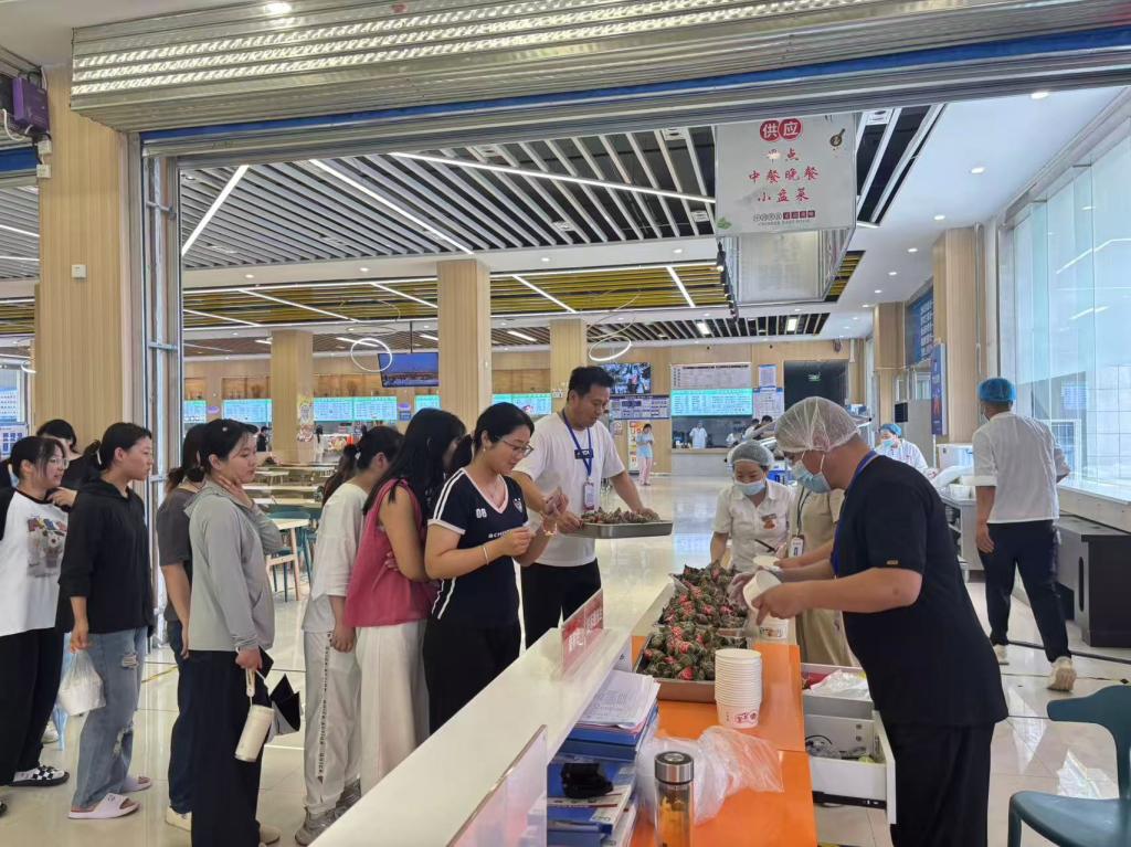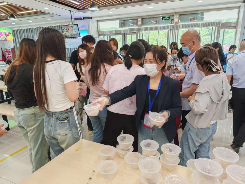 在互动交流环节,各食堂开展了“光盘有礼”活动,每当有师生将餐盘送至回收处时,工作人员会检查餐盘是否“光盘”,并对达到标准的师生赠送饮用水、新鲜水果小礼品,鼓励师生养成节约粮食的好习惯,活动现场气氛热烈。