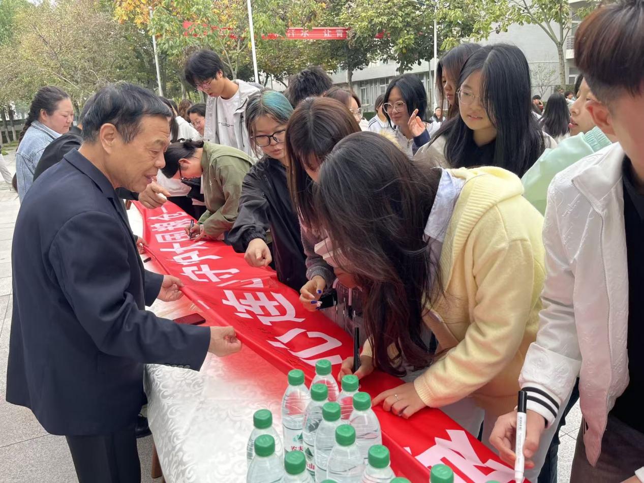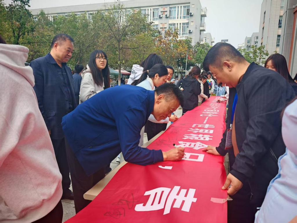 在承诺签名环节,广大师生在“手拉手共品校园美食 心连心守护大国粮仓”的横幅上郑重签名,表达自己践行节约粮食的决心。